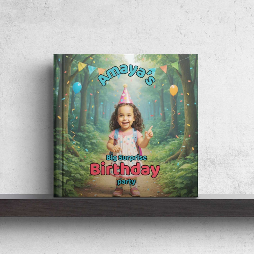 Your child receives a surprise letter from his animal friends asking for help to prepare a big party. Excited, they visits each animal and helps with decorations, snacks, music, and more. From baking banana cupcakes with Monkey to decorating the cake with Zebra, your child happily helps everyone. At the end, he asks Owl who the party is for, and all the animals shout, “It’s for YOU!” The story ends with the child tucked in bed, smiling after the best birthday ever.